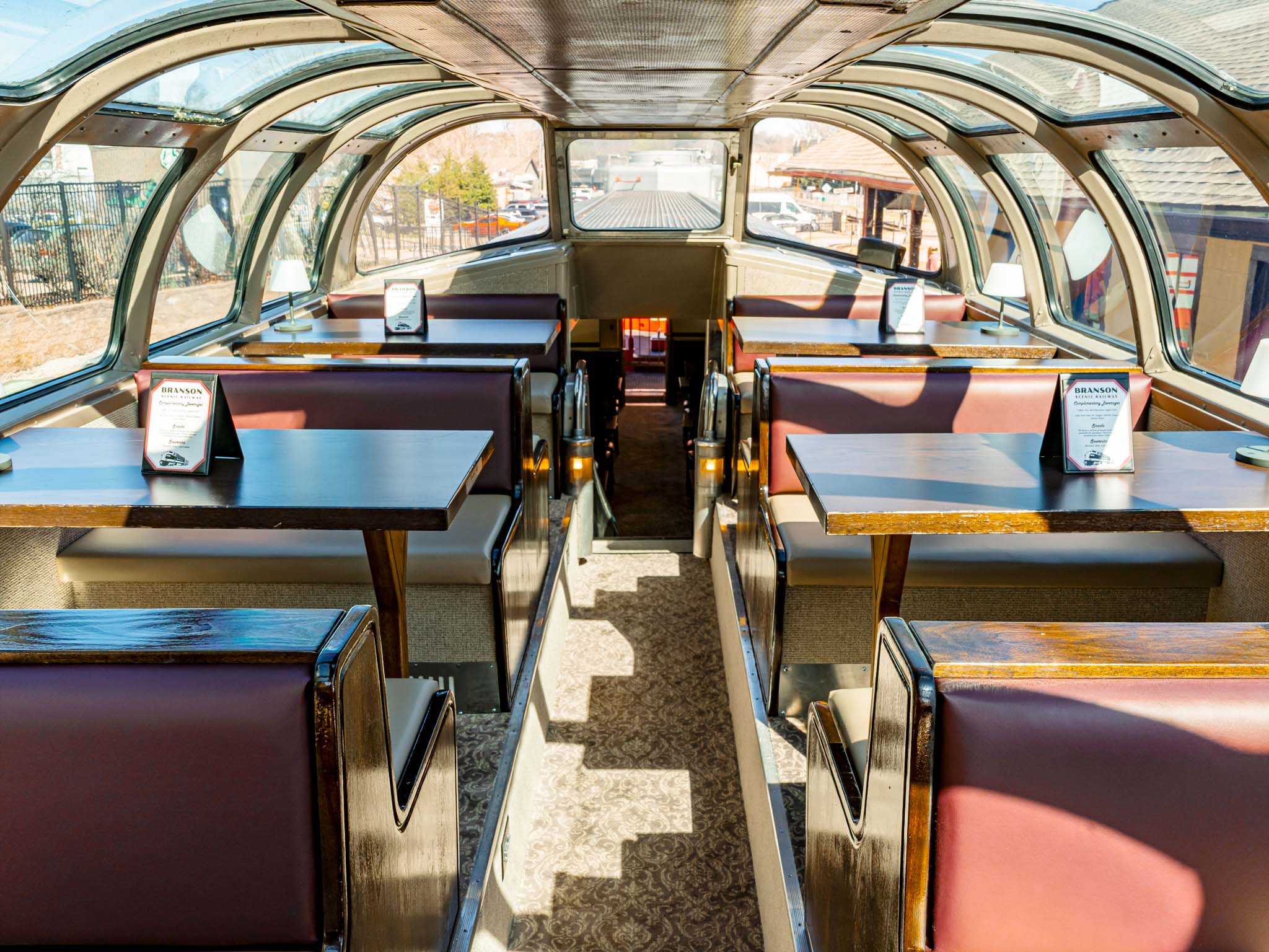 *Currently unavailable while undergoing restoration. Car is scheduled to return to service August 2026. Seats must be purchased in sets of two and guests will share a section with other passengers if they do not purchase all four seats. Dome seating is accessed via stairs and is not wheelchair accessible, nor is it recommended for those with mobility issues.